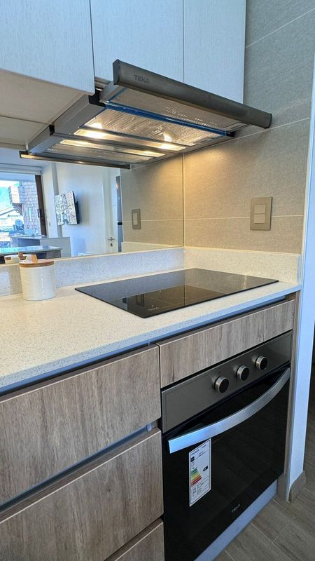 • Living - Comedor y cocina integrada con horno y encimera eléctricos